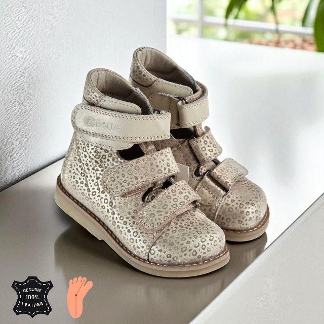 Антиварусне ортопедичне взуття розроблене для дітей із варусною деформацією стопи та клишоногістю. Туфлі виготовлені з натуральної шкіри преміум-якості та мають високу фіксуючу п’ятку, яка надійно обіймає ніжку, забезпечуючи правильне положення стопи. Модель без супінатора забезпечує природне положення стопи і дозволяє стопі рухатися вільно, без тиску на склепіння.